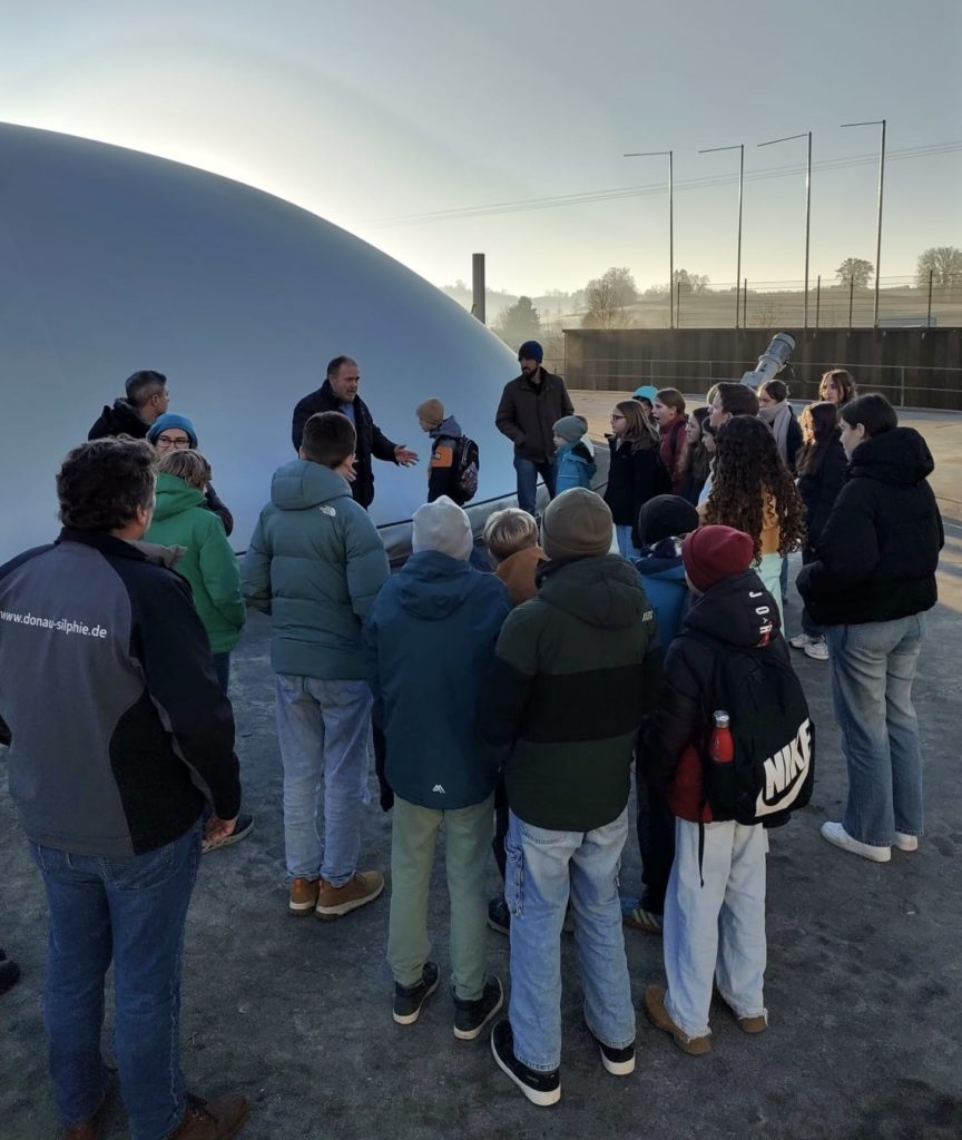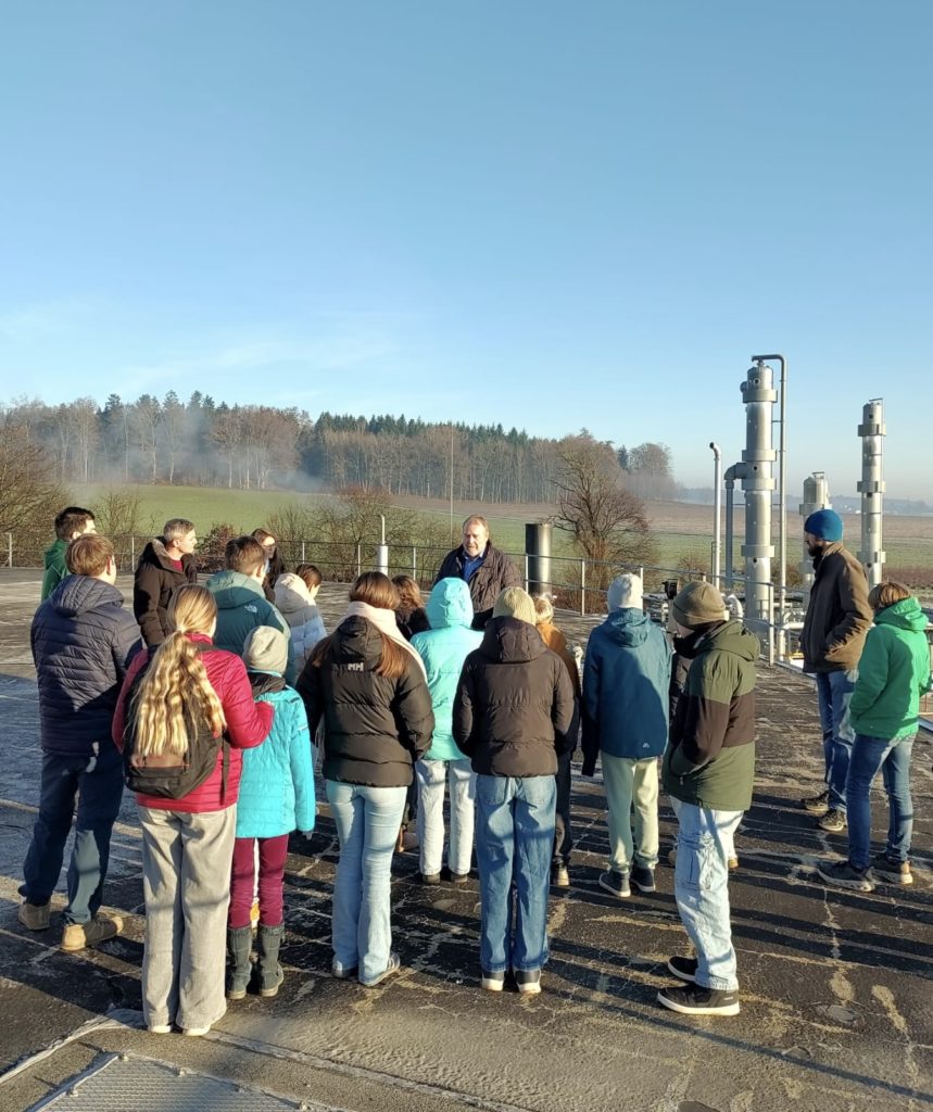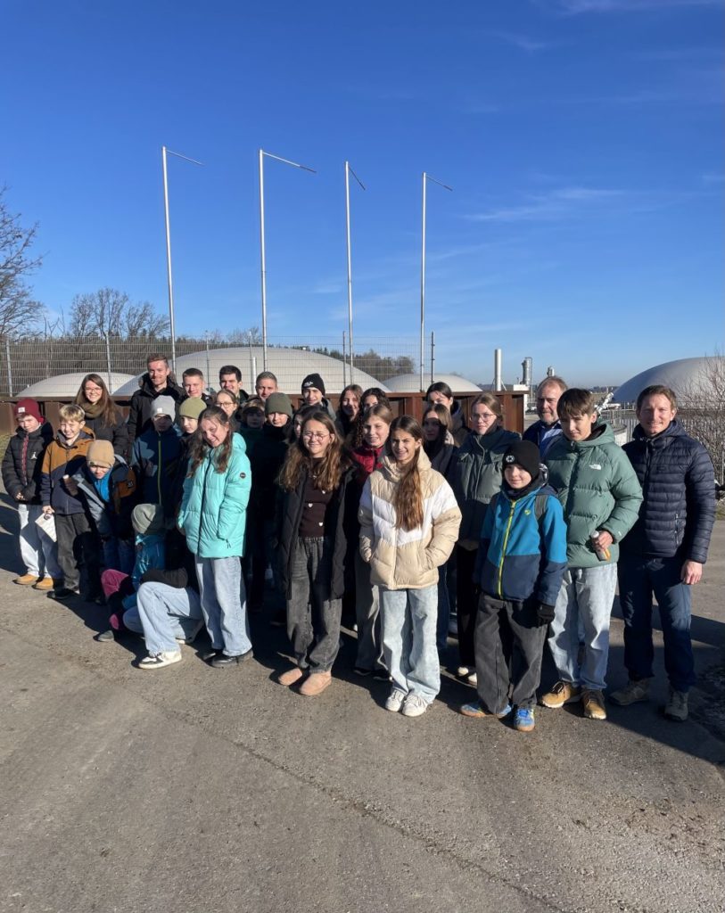Der Klimarat des Martin-Heidegger-Gymnasiums, bestehend aus den gewählten Umweltsprecher*innen der Klassenstufen 5 bis 12, unternahm heute eine Exkursion zum Energiepark Hahnennest. Ziel des Besuchs war es, Einblicke in eine zukunftsfähige und ganzheitlich gedachte Form der Energie- und Rohstoffgewinnung zu erhalten. Im Rahmen einer sehr anschaulichen und informativen Führung wurden mehrere Schwerpunkte gesetzt. Zunächst besichtigte die Gruppe die Biogasanlage und erhielt einen umfassenden Überblick über die Produktionsabläufe. Anschließend folgte die Besichtigung der Fermenter sowie der Faseranlage, in denen deutlich wurde, wie aus Reststoffen tierischer Herkunft und Energiepflanzen wertvolle Energie und Materialien entstehen. Ein weiterer Höhepunkt war die Besichtigung der Produktion von Zellstoffen, Einstreumaterialien und innovativen Torfersatzprodukten. Der Energiepark Hahnennest präsentierte sich dabei als beispielhaftes Projekt für eine zukunftsfähige Landwirtschaft. Die Anlage vereint Landwirt*innen unterschiedlicher Produktionsrichtungen und setzt auf eine konsequente Kaskadennutzung von Energiepflanzen. Dadurch wird nicht nur Biogas erzeugt, sondern auch Naturfaserstoffe und weitere Rohstoffe gewonnen. Dieses ganzheitliche Konzept ermöglicht eine besonders effiziente und umweltfreundliche Nutzung von Ressourcen und trägt gleichzeitig zur Reduktion von Abfällen und Treibhausgasemissionen bei. Die Mitglieder des Klimarats zeigten sich begeistert von der lehrreichen und inspirierenden Besichtigung und bedankten sich herzlich für die sehr interessanten Einblicke. Die Exkursion wurde gemeinsam mit dem Unternehmen LiveFresh durchgeführt, das bereits im vergangenen Schuljahr vom Klimarat besucht worden war. Auch LiveFresh gilt ein besonderer Dank für die erneute Zusammenarbeit und die Unterstützung dieser gelungenen Lerngelegenheit. Der Besuch im Energiepark Hahnennest hat eindrucksvoll gezeigt, wie nachhaltige Energiegewinnung und innovative Landwirtschaft in der Praxis umgesetzt werden können.