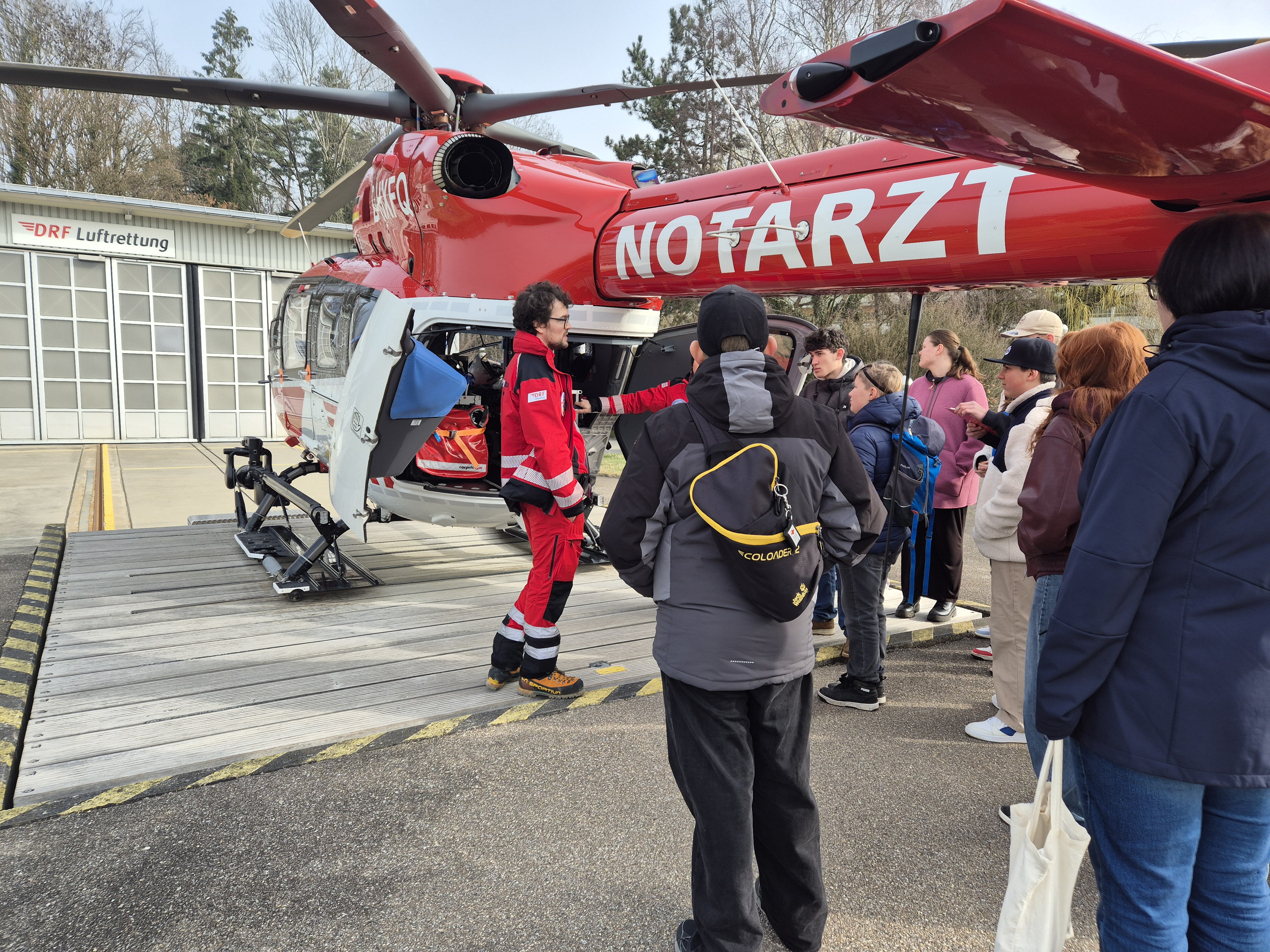 Die Schüler*innen des Schulsanitätsdienstes und der Juniorhelfer hatten am 6.3.2026 die Gelegenheit, zusammen mit Schüler*innen der Kasimir-Walchner-Schule aus Pfullendorf die Wache des Rettungshubschraubers Christoph 45 in Friedrichshafen zu besichtigen.