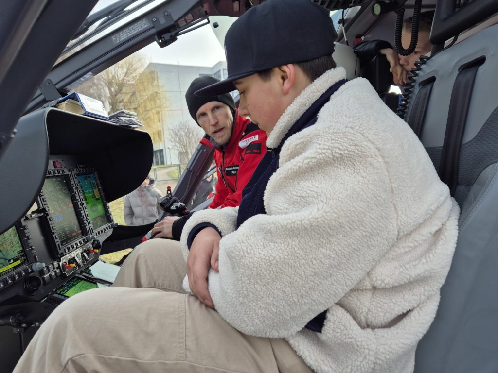 Ein besonderes Highlight an diesem Morgen war für die Schüler*innen ganz bestimmt die Tatsache, dass sie den Hubschrauber auch von innen besichtigen, alles aus der Nähe anschauen und auch anfassen durften.